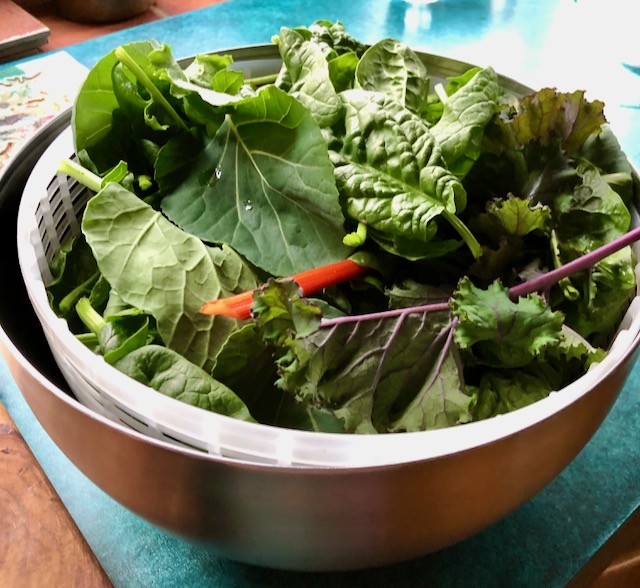 And I was thankful to be out harvesting greens this evening after dinner. Kale, chard, spinach mustard, and purple mustard. All to be cooked for tomorrow's lunch and dinner.